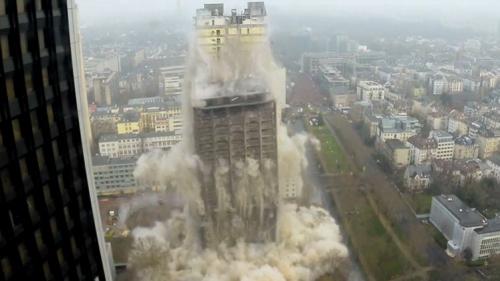 تفجير أعلى مبنى جامعي في أوروبا وانهياره في ثوانٍ